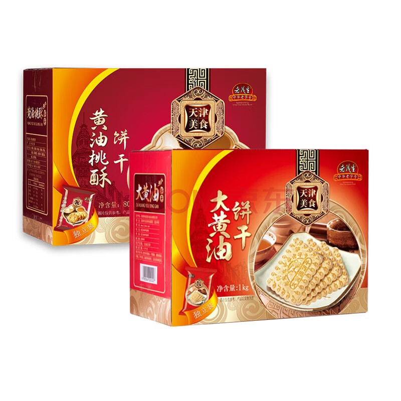 老茂生 零食糕点 天津特产老字号小吃 经典礼盒大黄油饼干1kg/盒