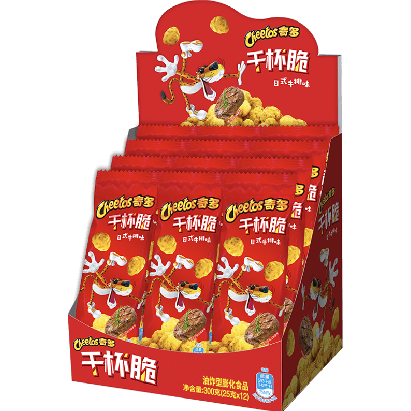 奇多(Cheetos)粟米棒 日式牛排味 25克*12包 干杯脆 零食 休闲食品