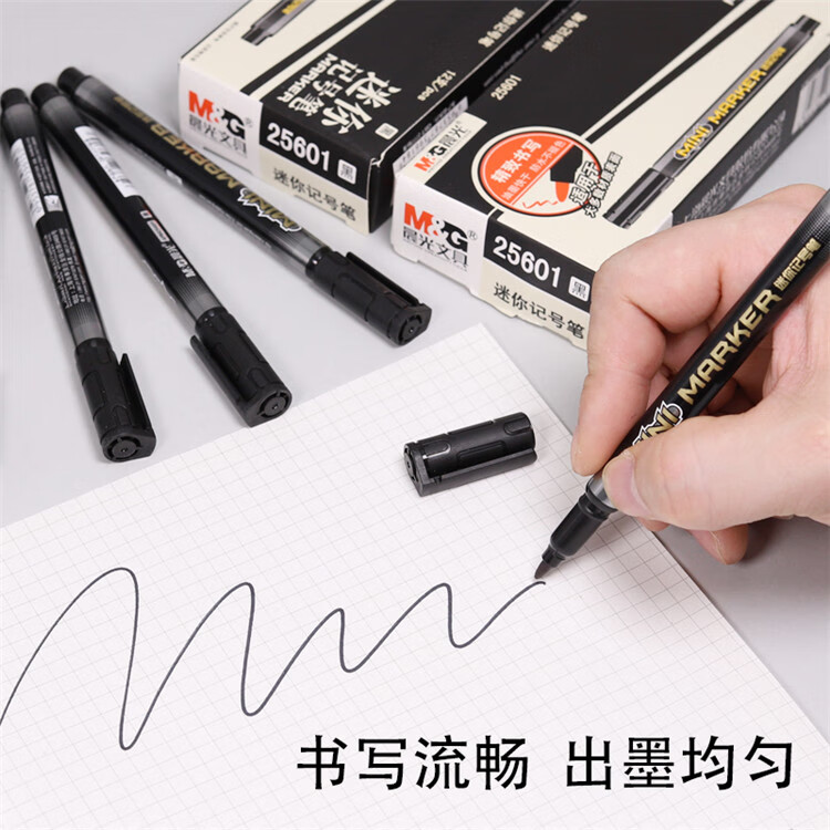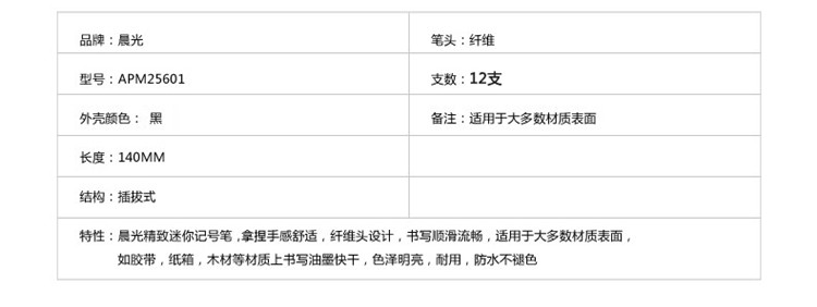 晨光记号笔细头单头油性光盘笔物流包装笔防水速干不掉色马克笔细款勾线笔不可擦 APM25601黑色 12支