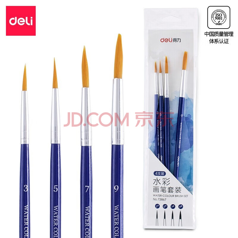 得力(deli)4支单号3/5/7/9水粉画笔油画笔油画专用笔 蓝色73867 wm