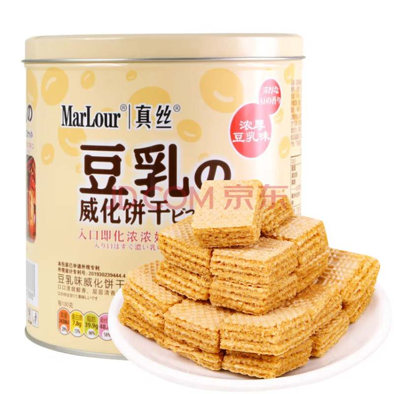 真丝豆乳威化饼干350g罐装万宝路零食儿童夹心饼干办公司下午茶糕点