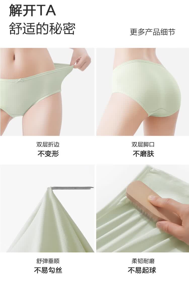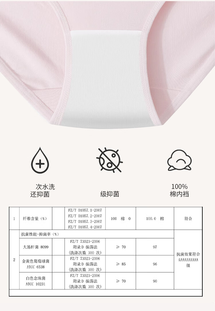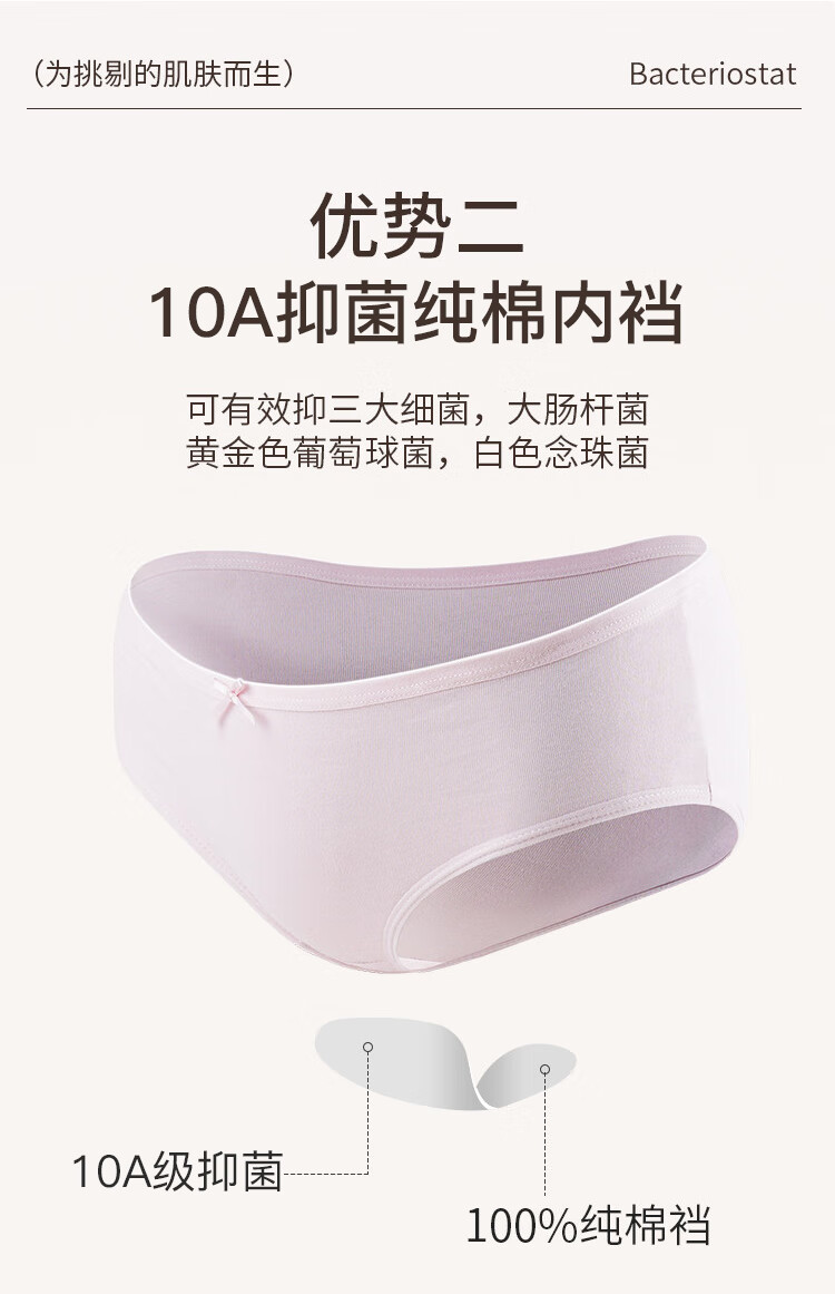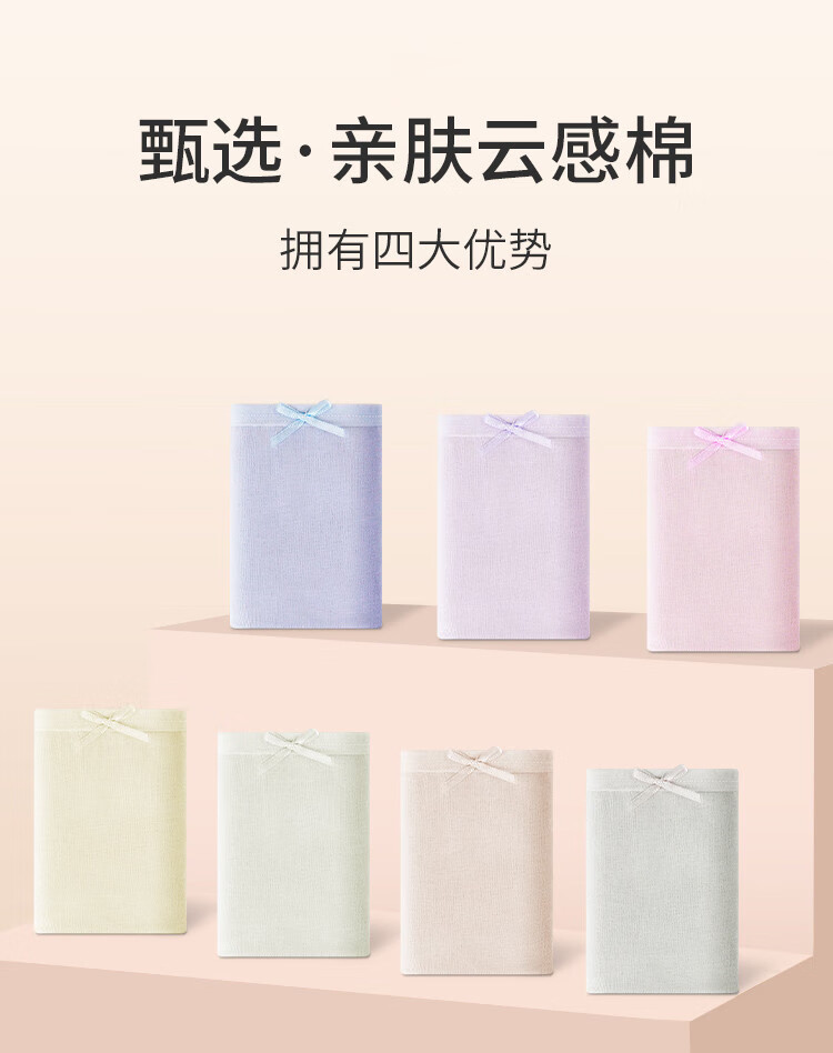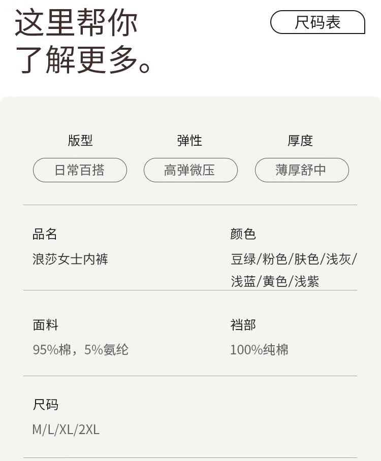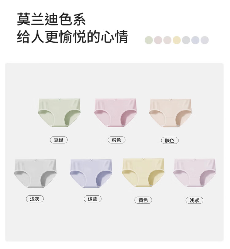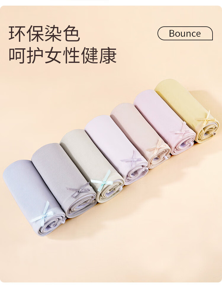 浪莎女士内裤女7条装纯棉10A抗菌裆中腰无痕简约少女内裤三角裤头