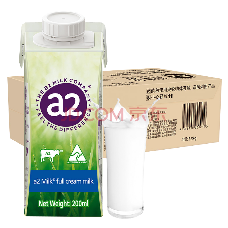 a2牛奶 澳洲原装 全脂纯牛奶 A2型蛋白质 100%生牛乳 200ml*24盒