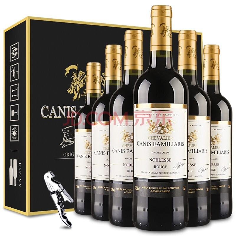 CANIS FAMILIARIS布多格 法国原瓶进口红酒骑士干红葡萄酒750ml*6节日送礼礼盒整箱