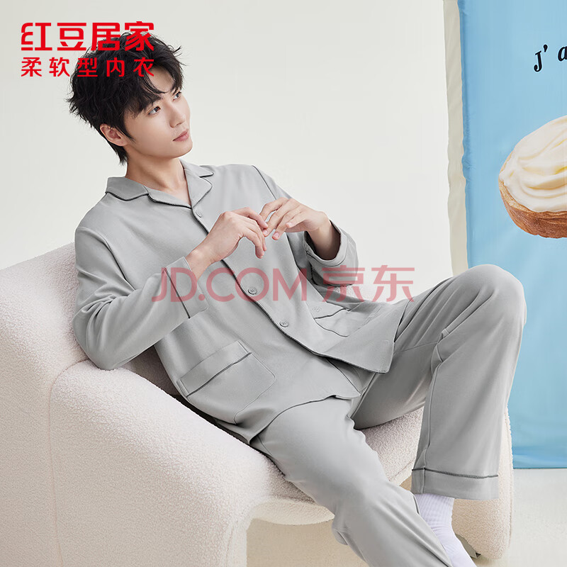 红豆居家男士220g双面纯棉精梳紧密赛络纺睡衣男家居服 孤辰灰 XL