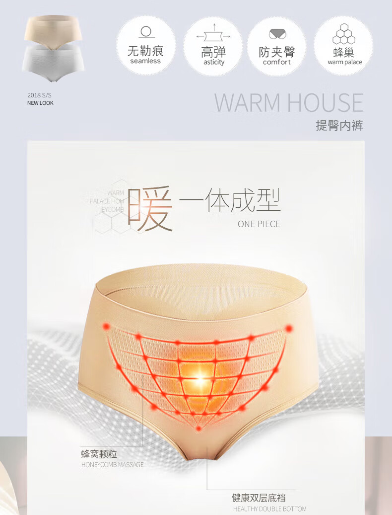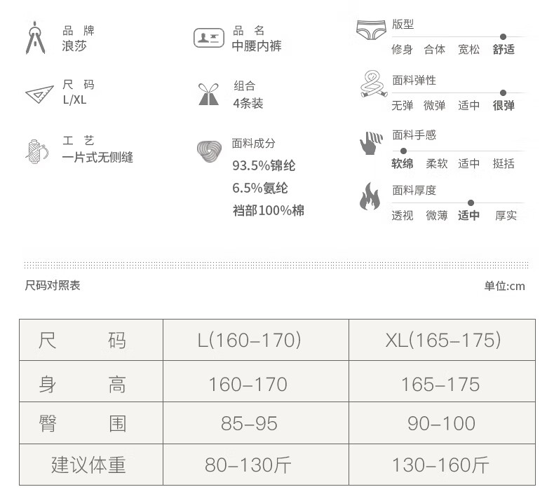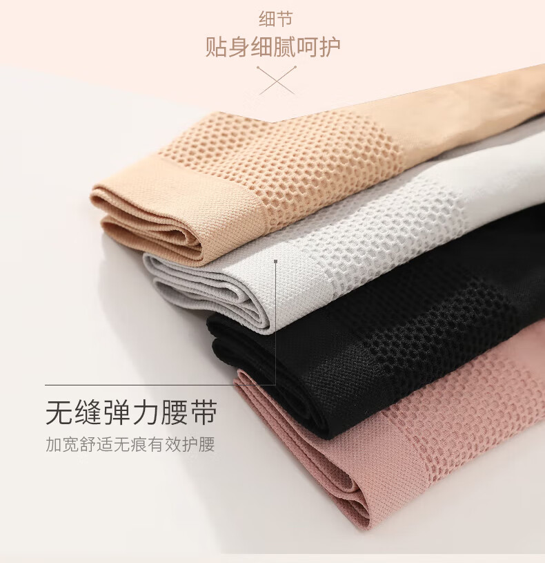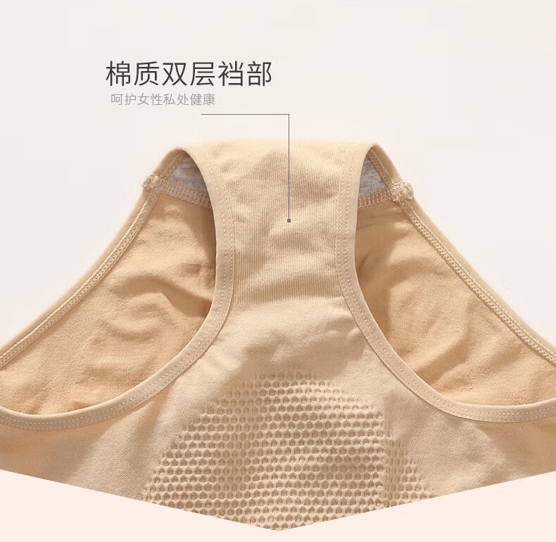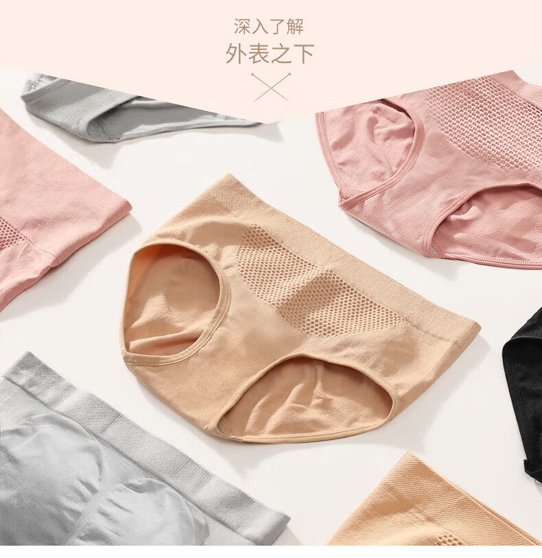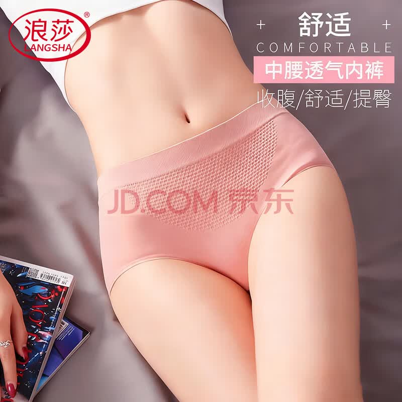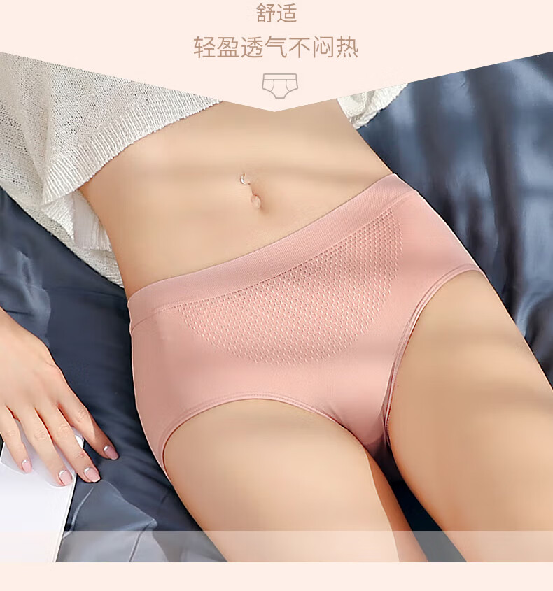 浪莎女士内裤女中腰无缝蜂巢收腹提臀三角高弹力短裤4条装 L