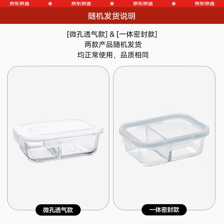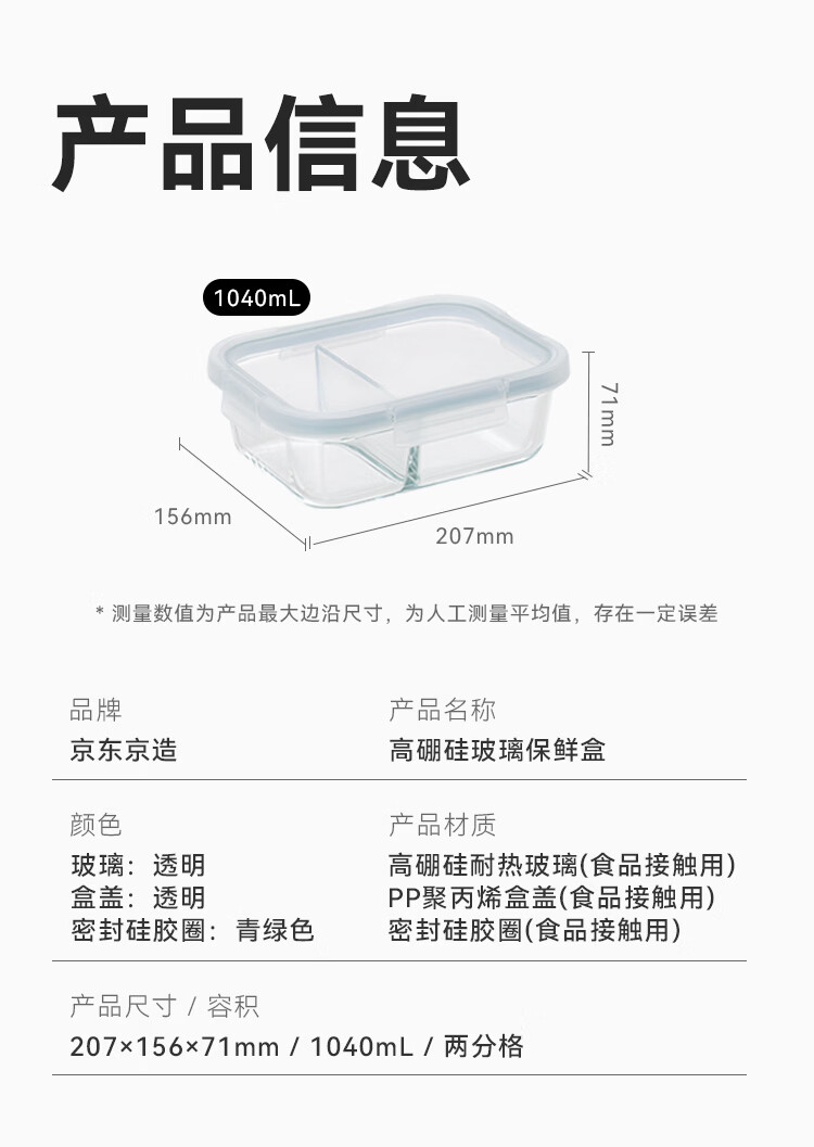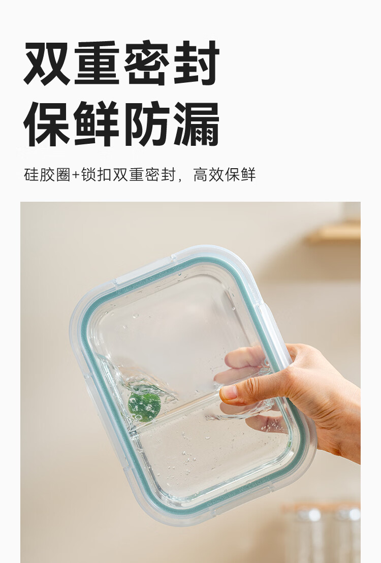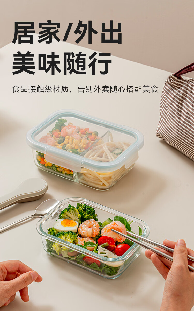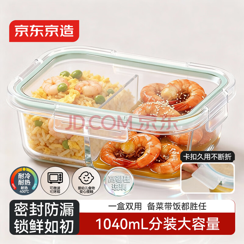 京东京造高硼硅耐热可微波分格保鲜盒学生上班族便当盒两分格1040mL