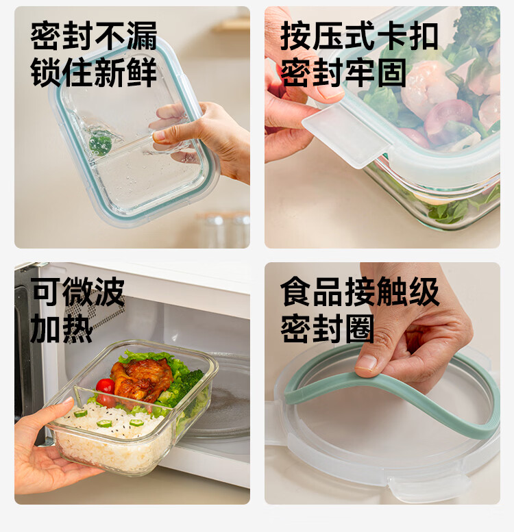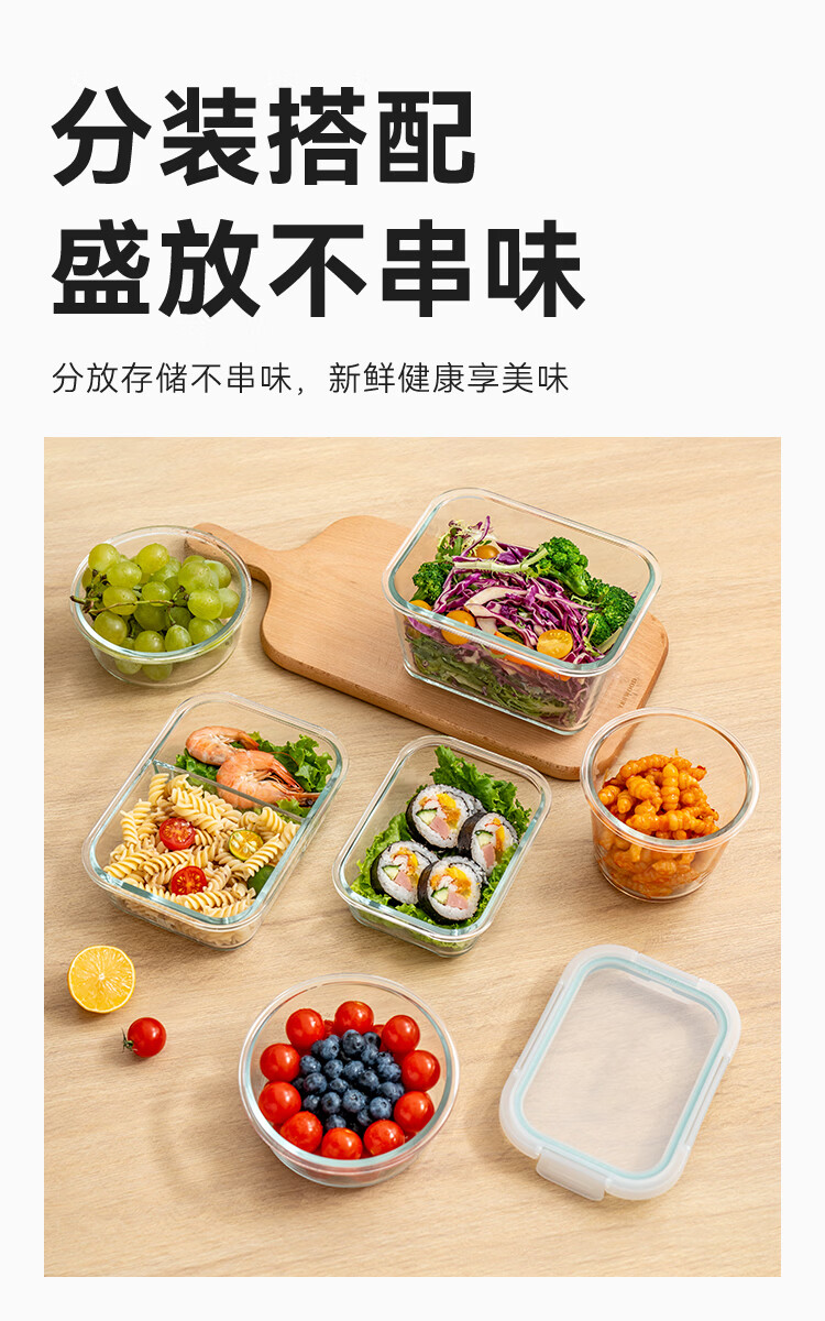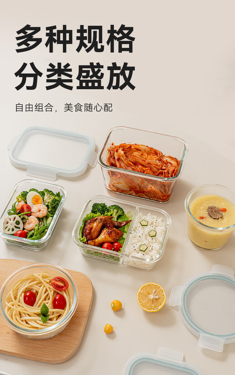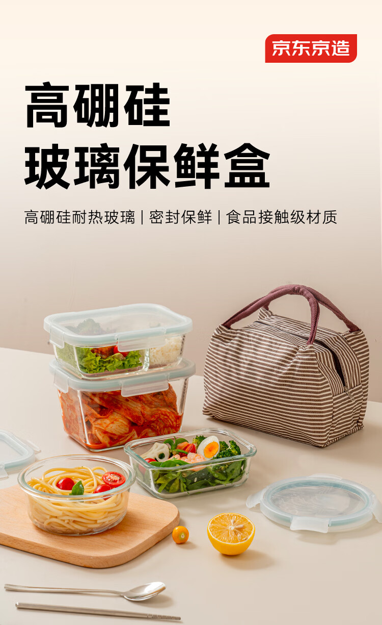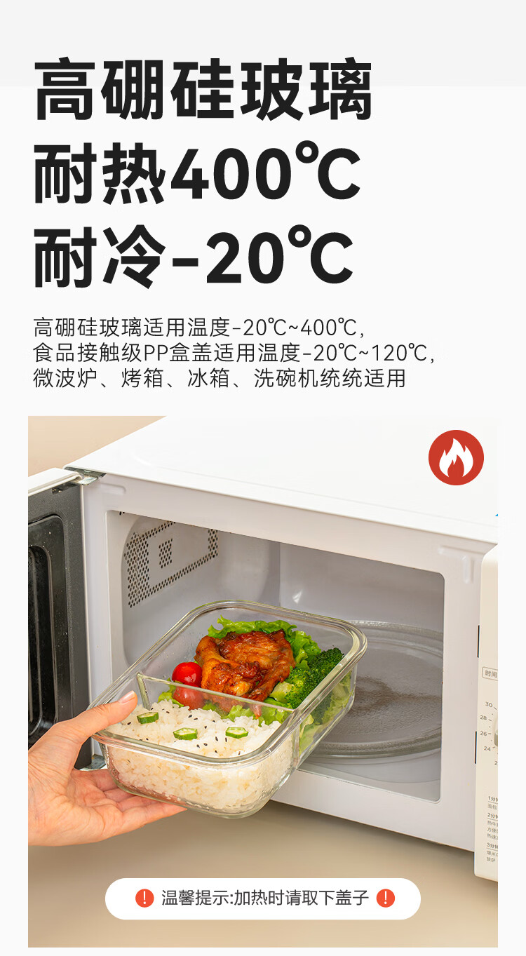 京东京造高硼硅耐热可微波分格保鲜盒学生上班族便当盒两分格1040mL