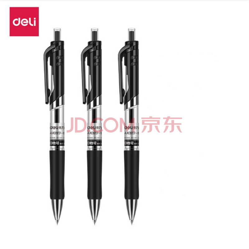 得力(deli) 按动中性笔 签字笔 水笔 黑色办公中性笔 0.5mm 黑 S01 12支/盒