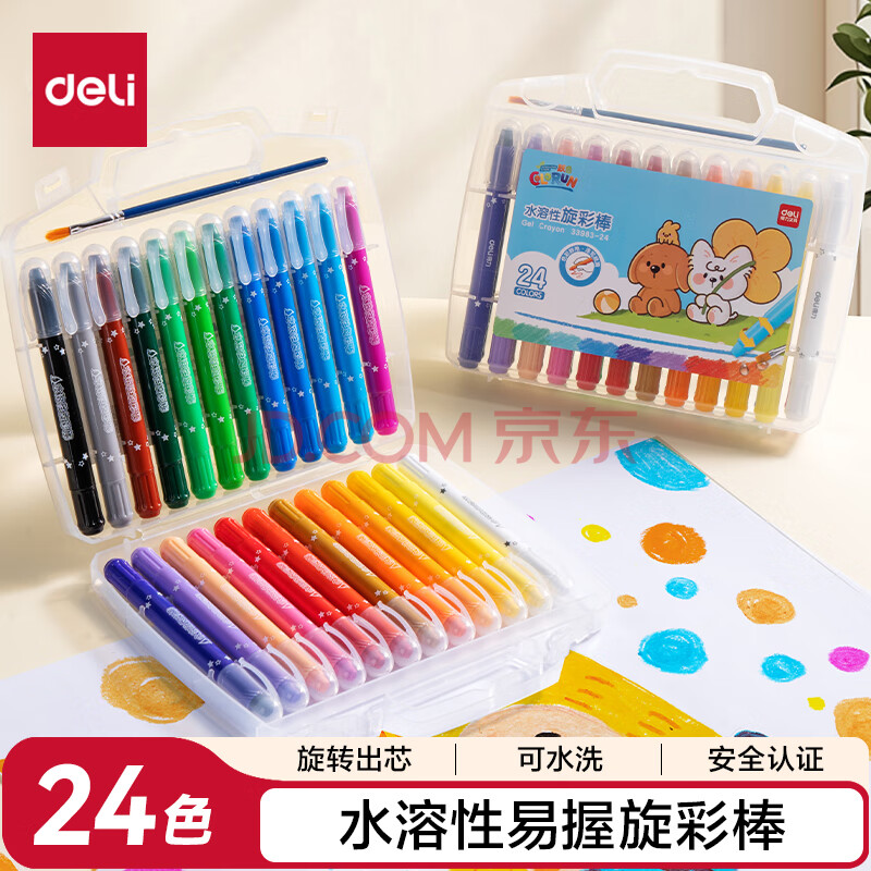 得力(deli)水溶性油画棒24色可水洗旋转出芯蜡笔炫彩棒套装幼儿画画涂色油画棒儿童礼物