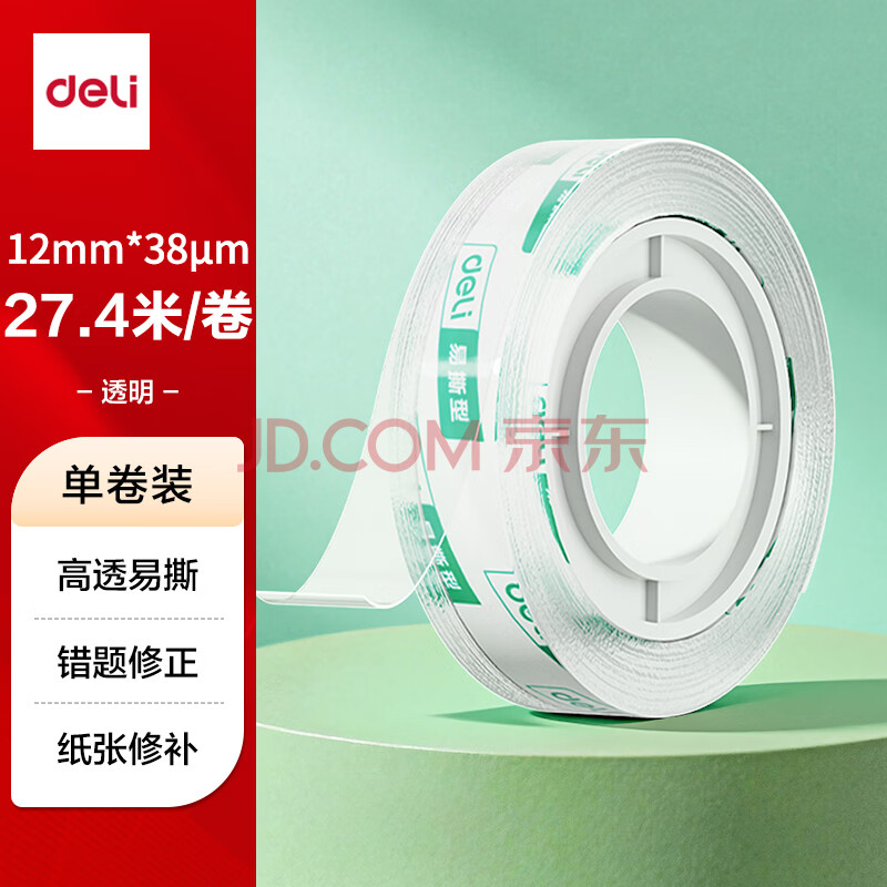 得力(deli)易撕透明胶带 12mm*30y高粘小胶带 开学必备学习用品 错题整理学生文具 1卷凑单 办公用品 30009
