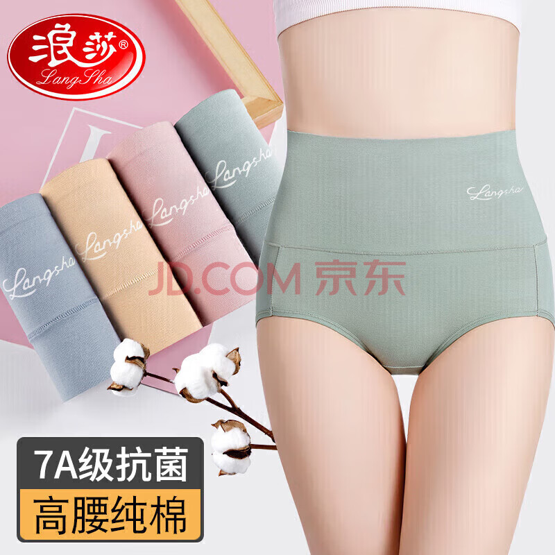 浪莎高腰内裤女4条纯棉抑菌裆女士收腹舒适大码棉质三角裤