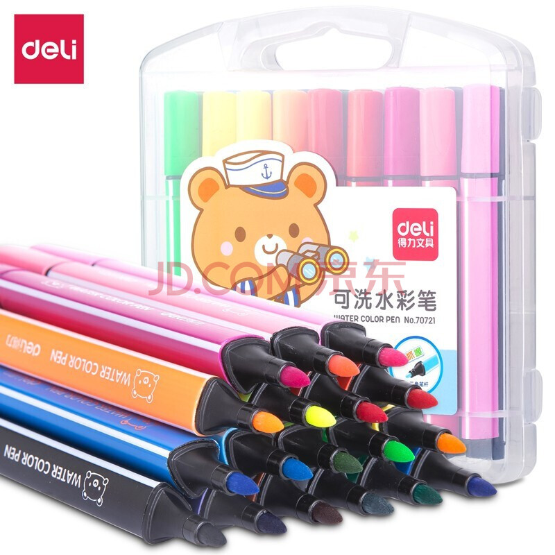 得力(deli)水彩笔70721萌伊学生儿童涂鸦绘画填色笔套装美术用品文具玩具儿童礼物收纳盒水溶性18色