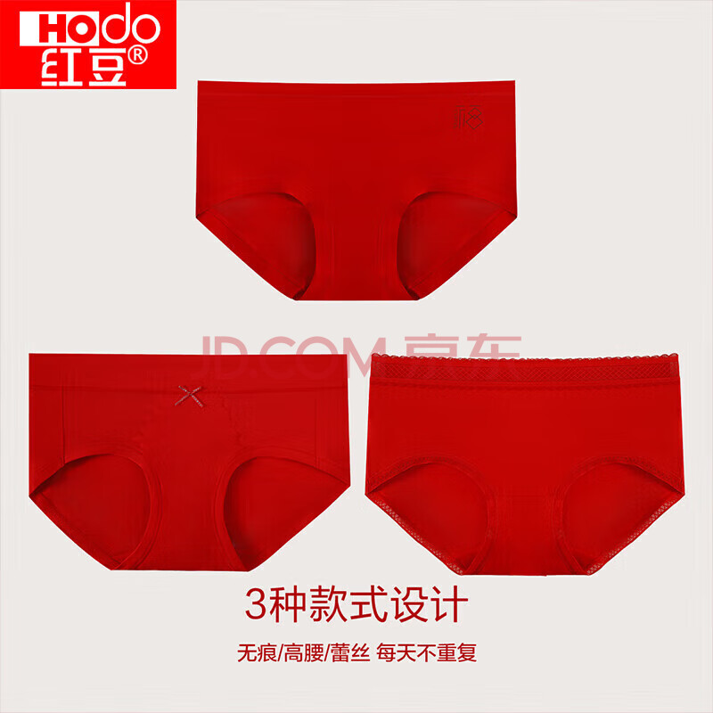 红豆红内裤女三角裤柔棉无痕弹力鸿运本命年结婚短裤3条装
