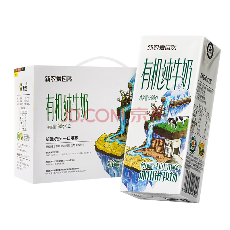 新农爱自然有机纯牛奶200g*12盒 新疆冰川带牧场全脂牛奶整箱