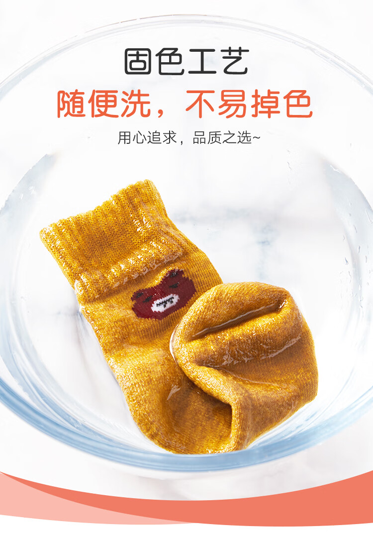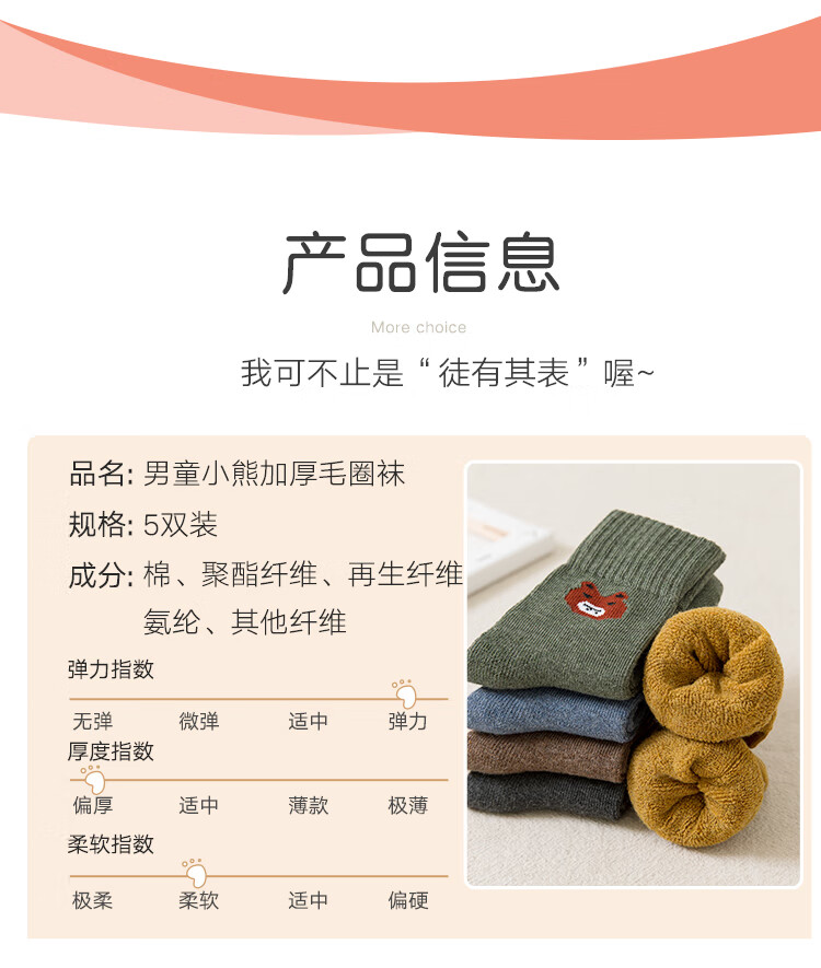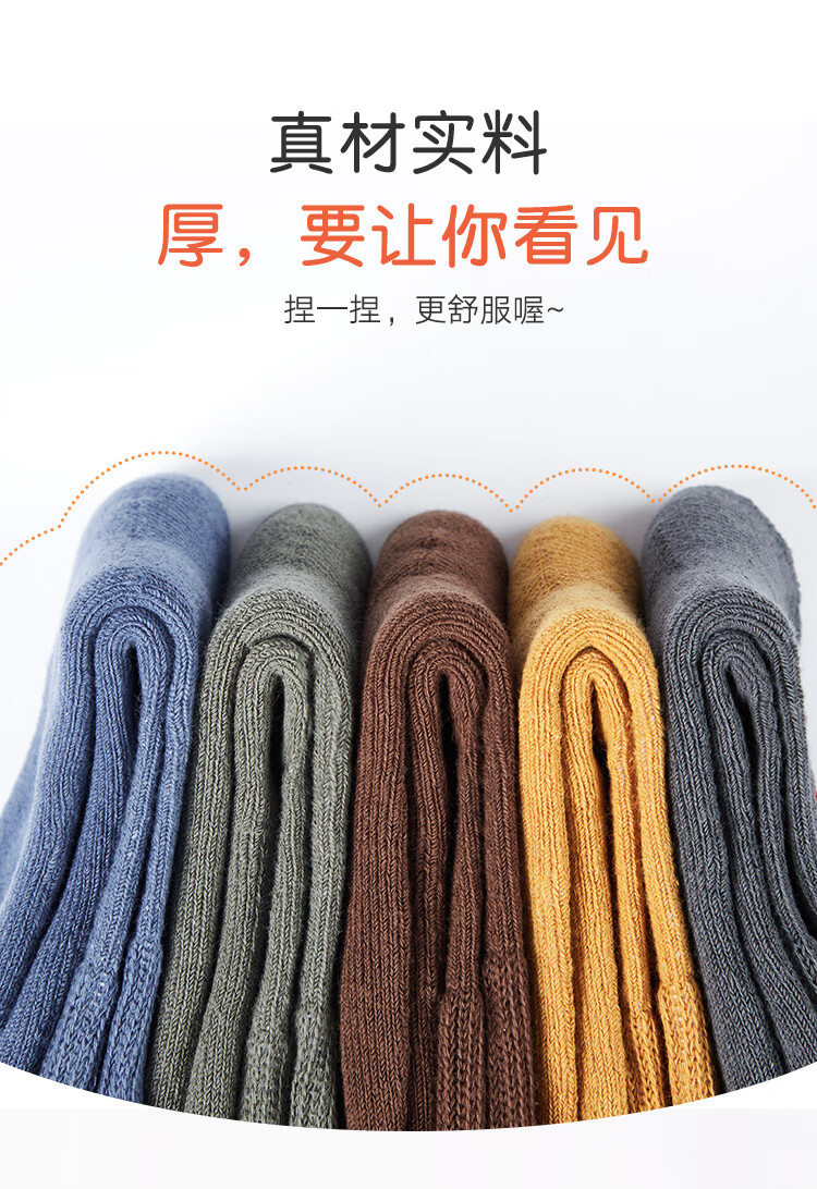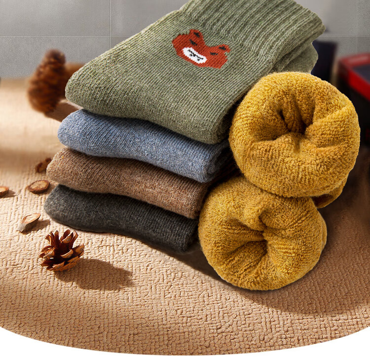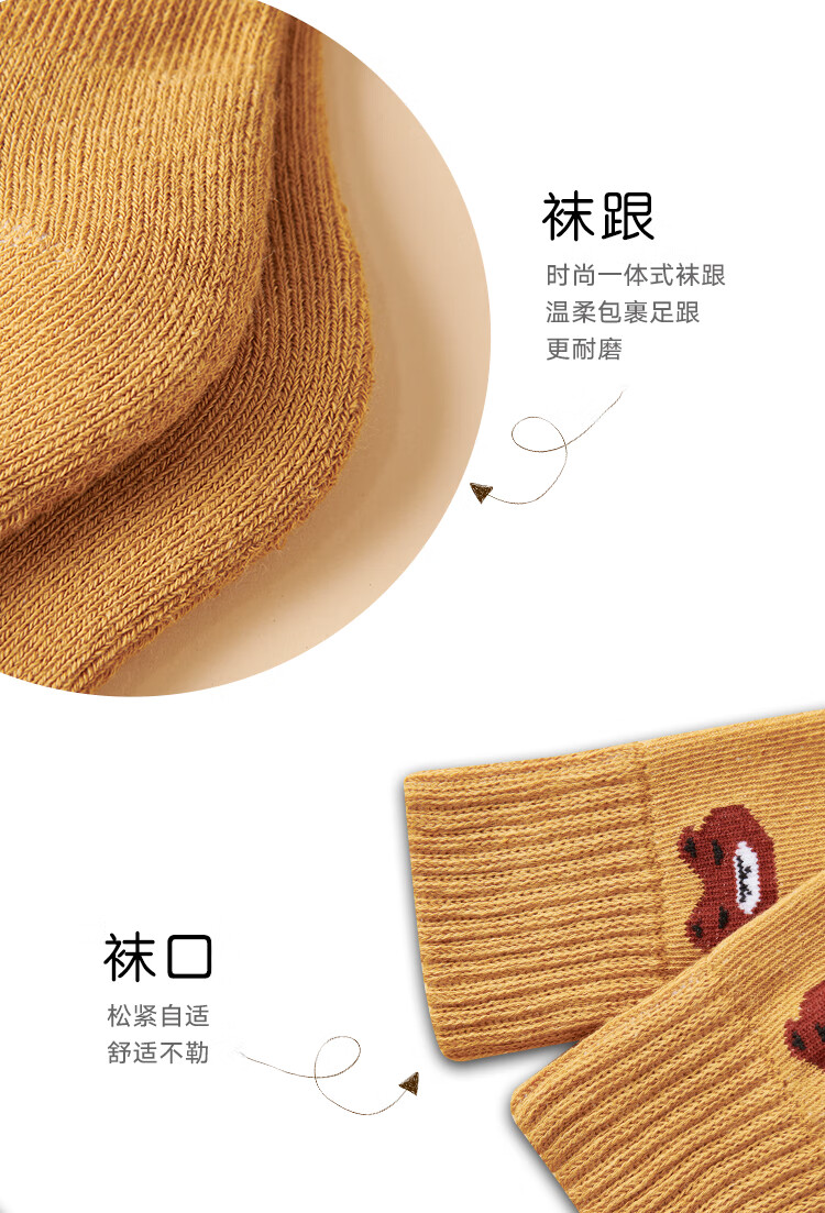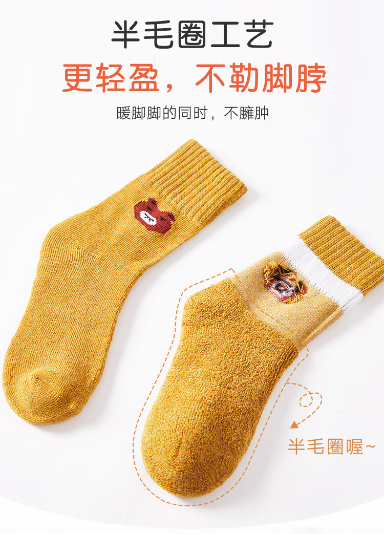 南极人儿童袜子男女童5双装中筒加厚毛圈袜儿童秋冬季棉袜可爱小熊L