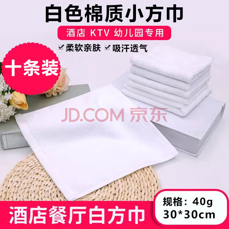花蓓诗白色棉质小方巾小毛巾擦手抹布40g 30*30cm 10条装