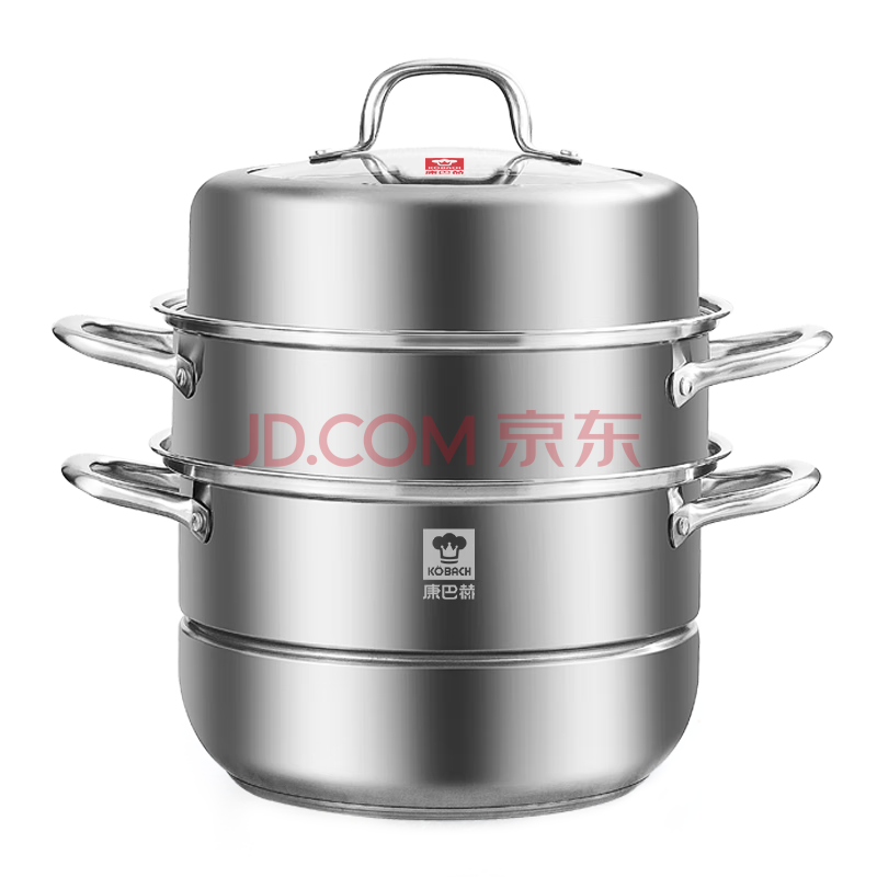 康巴赫304不锈钢三层蒸锅蒸笼复底大汤蒸锅多功能锅具32cm燃气灶通用