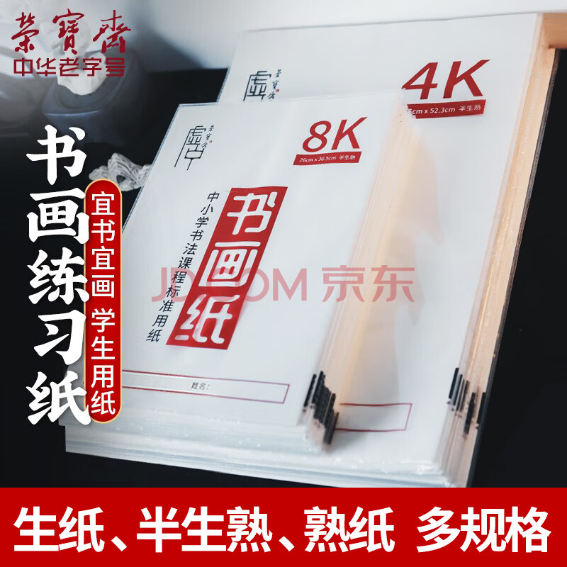 荣宝斋 书画宣纸 日星宣纸半生熟书法专用毛笔字练习毛边纸初学者成人学生入门 8k-半生熟/30张