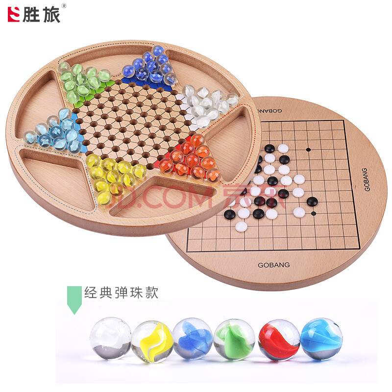 胜旅跳棋五子棋二合一玻璃珠木质跳跳棋儿童玩具桌游亲子互动游戏棋