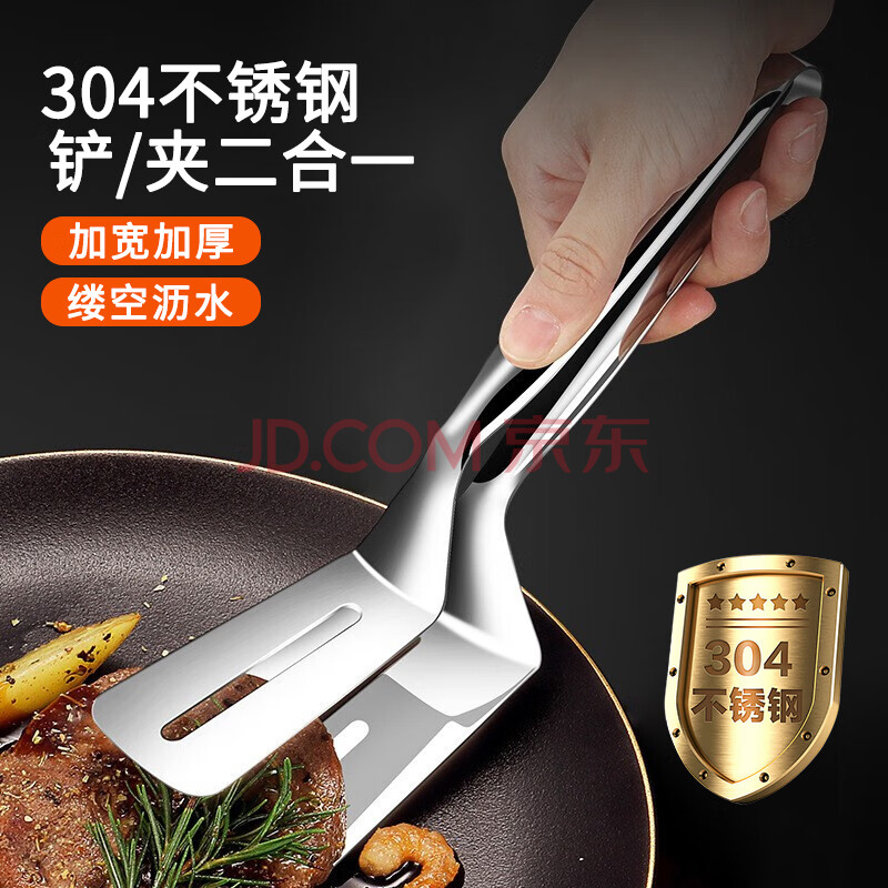 Edo304不锈钢牛排夹家用煎牛排鱼铲多功能食物夹烧烤夹防烫面包夹