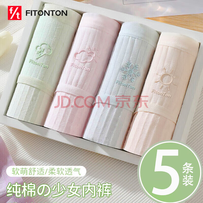 FitonTon5条装内裤女纯棉裆女士内裤抑菌中腰少女天气云朵系列L