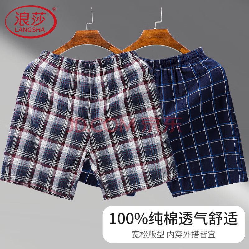 浪莎睡裤男纯棉短裤夏季薄款宽松家居睡衣五分大裤衩大码休闲裤