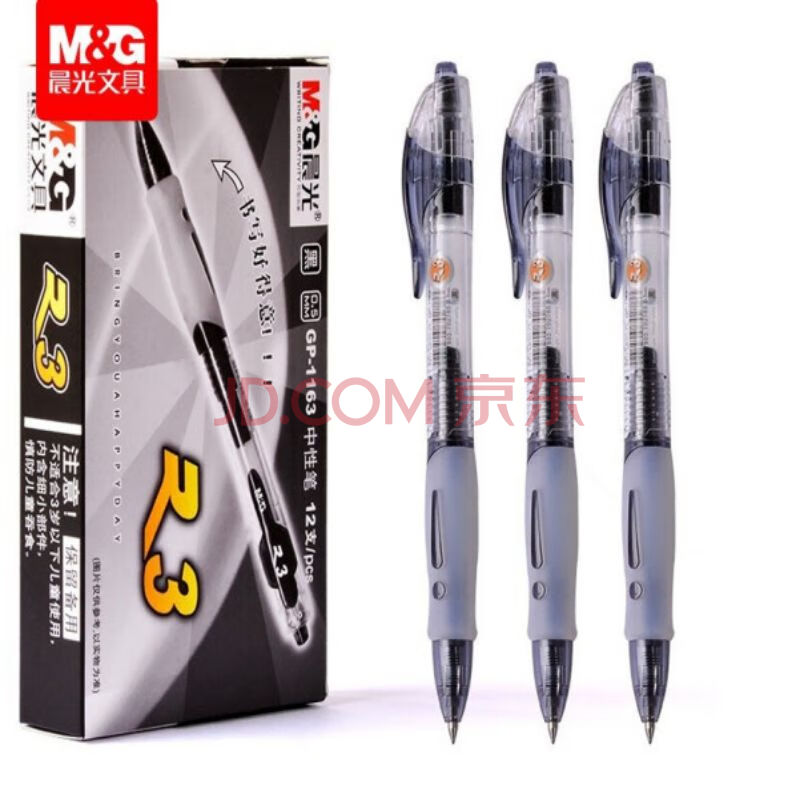 晨光(M&G)GP1163按动中性笔办公0.5mm子弹头签字笔黑色碳素水笔学生中性笔12支/盒 1盒装
