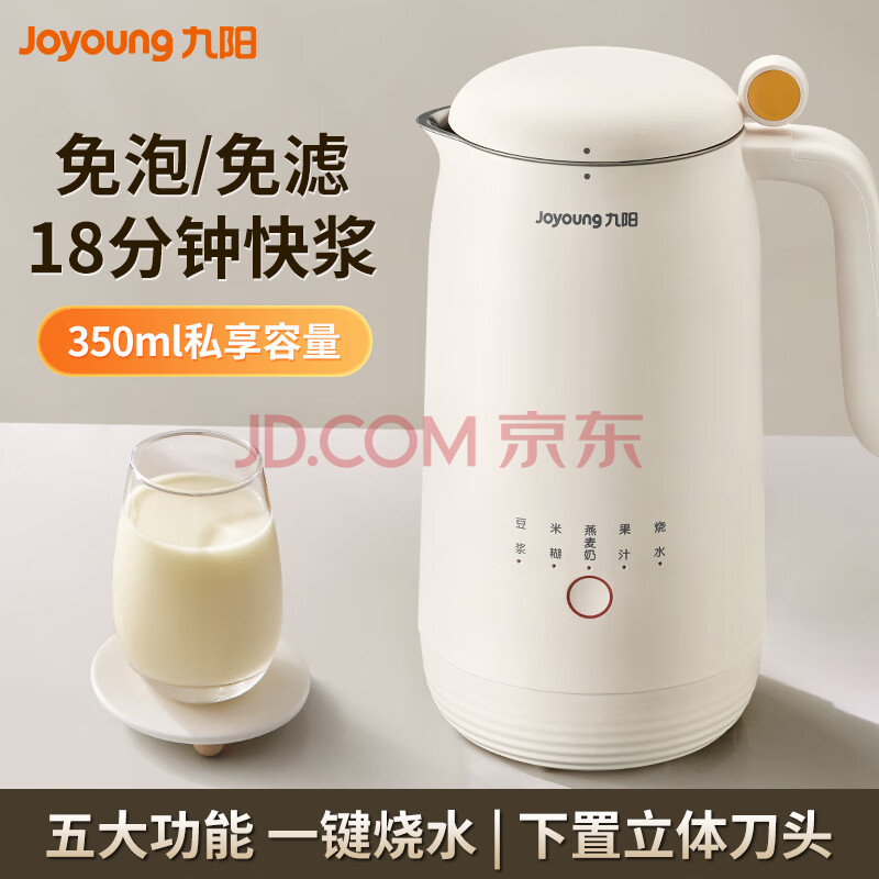 九阳(Joyoung)迷你豆浆机小型破壁免滤1-2人小容量家用米糊机DJ03X-D120(白)