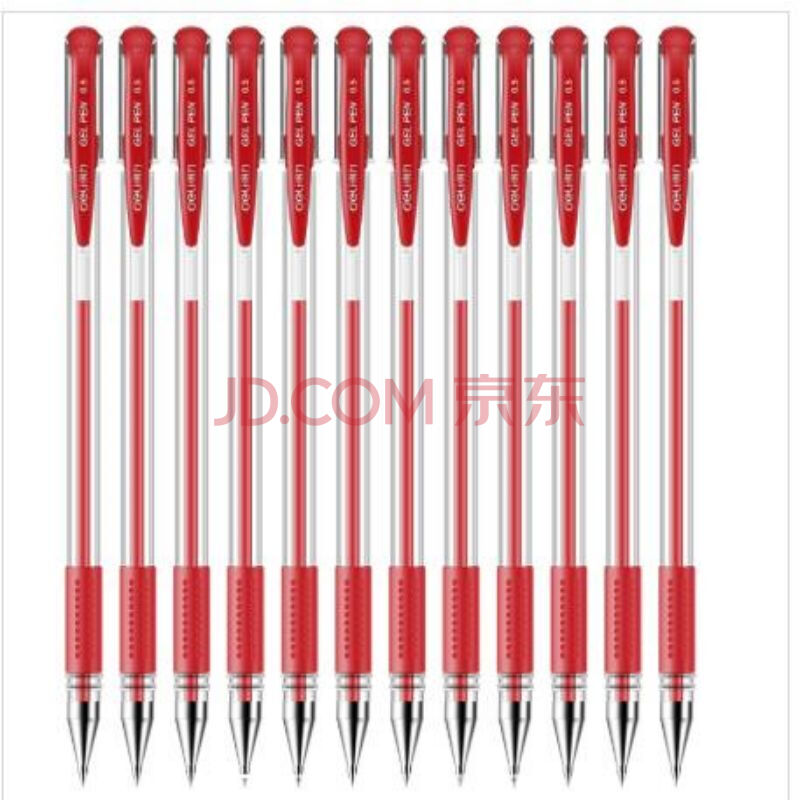 得力(deli) 6600中性笔0.5mm 子弹头0.5mm经济版红色中性笔 12支/1盒装