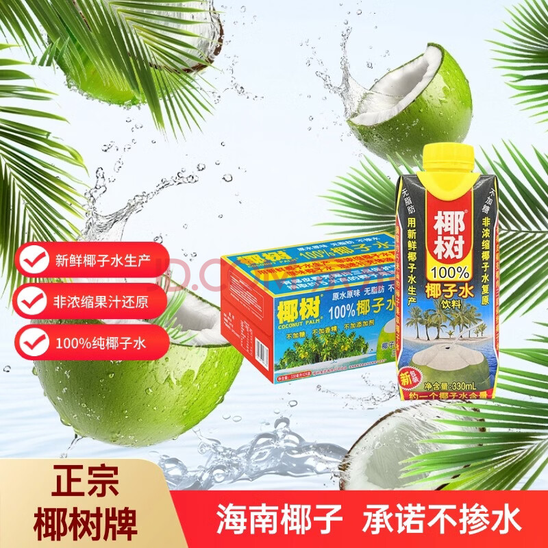 椰树100%NFC椰子水 330ml*24盒 利乐钻饮料 海南特产年货送礼年货