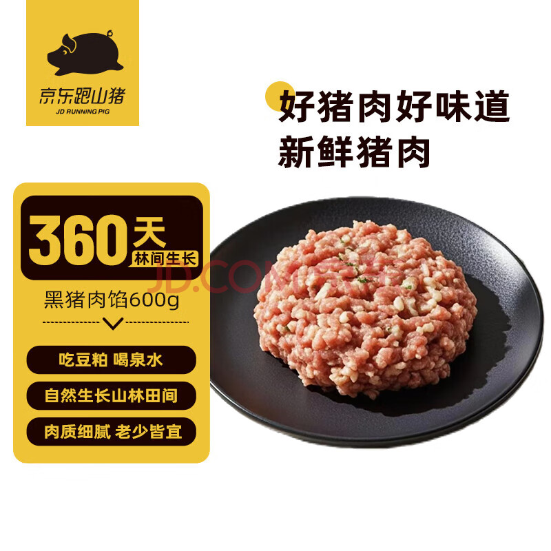 京东跑山猪国产3:7黑猪肉馅600g冷冻馄饨馅饺子馅京东