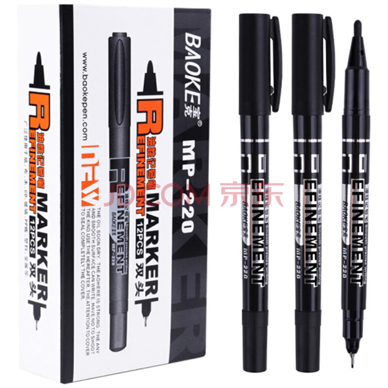 宝克(BAOKE) 油性记号笔 双头记号笔 勾线记号笔 画图描边记号笔 黑色 MP220 12支/盒