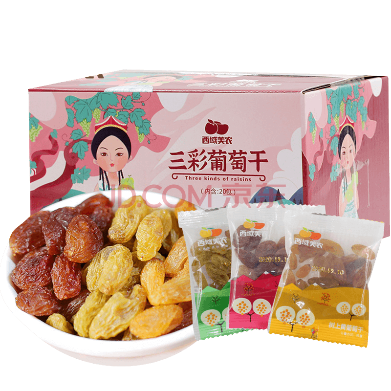 西域美农免洗三色葡萄干225g 无核大颗粒独立小袋装 新疆特产蜜饯果干