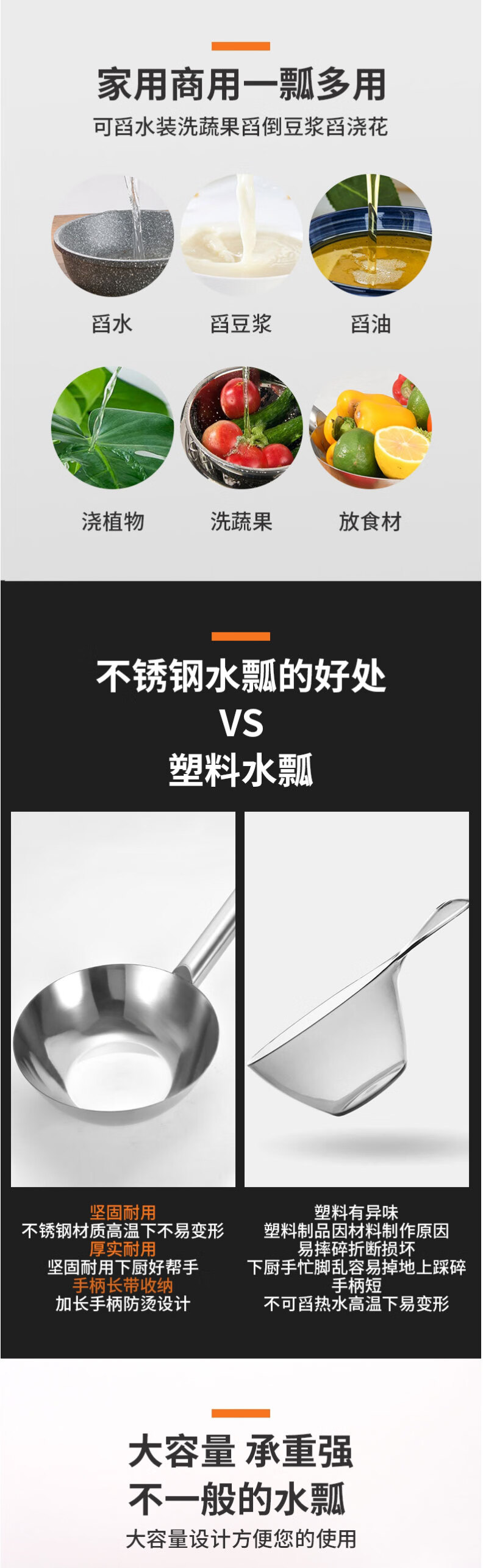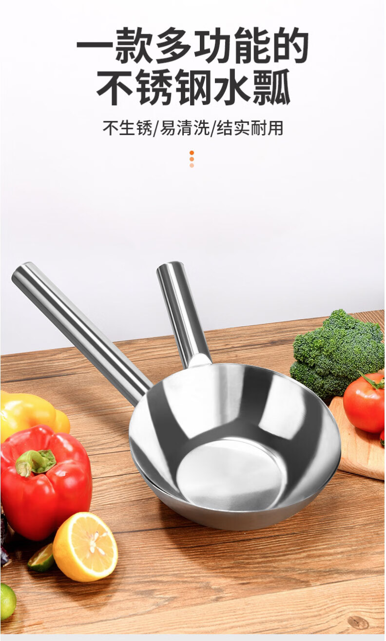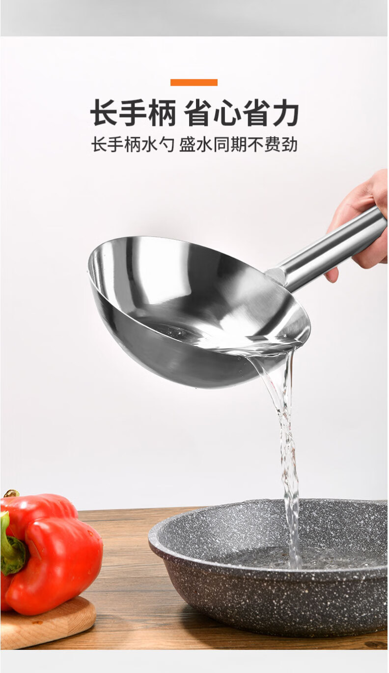 Homeglen 不锈钢水瓢加厚长柄特大号舀水勺厨房水舀子马勺 长柄小号封口