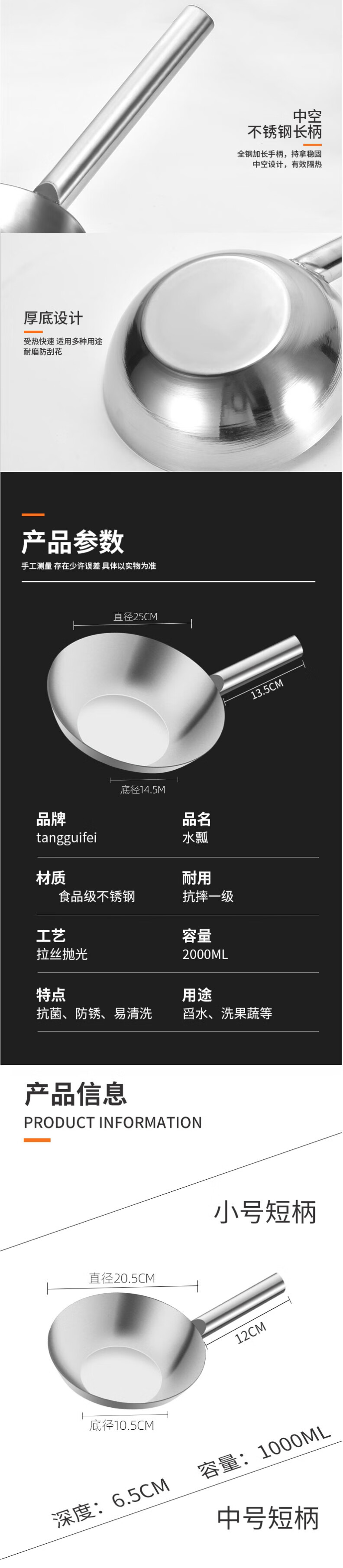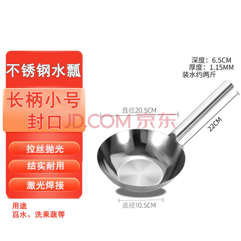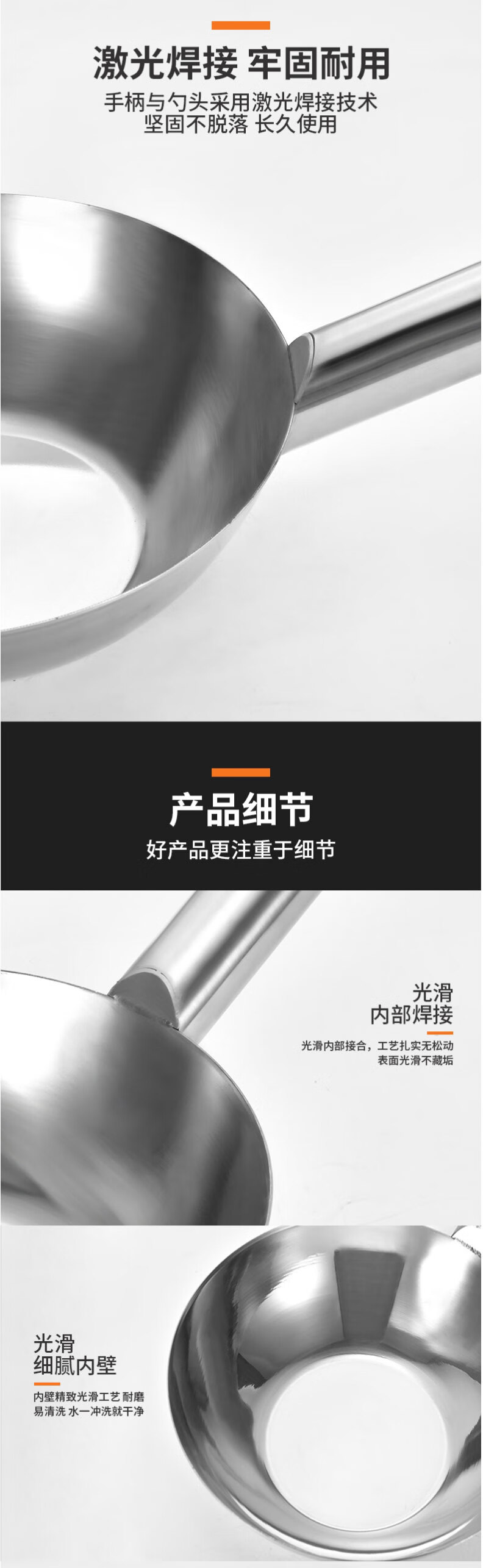 Homeglen 不锈钢水瓢加厚长柄特大号舀水勺厨房水舀子马勺 长柄小号封口