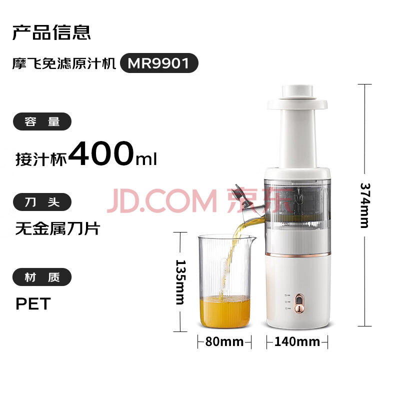 摩飞电器(Morphyrichards)榨汁机家用原汁机 渣汁分离 多功能全自动果蔬榨果汁机 MR9901 白色