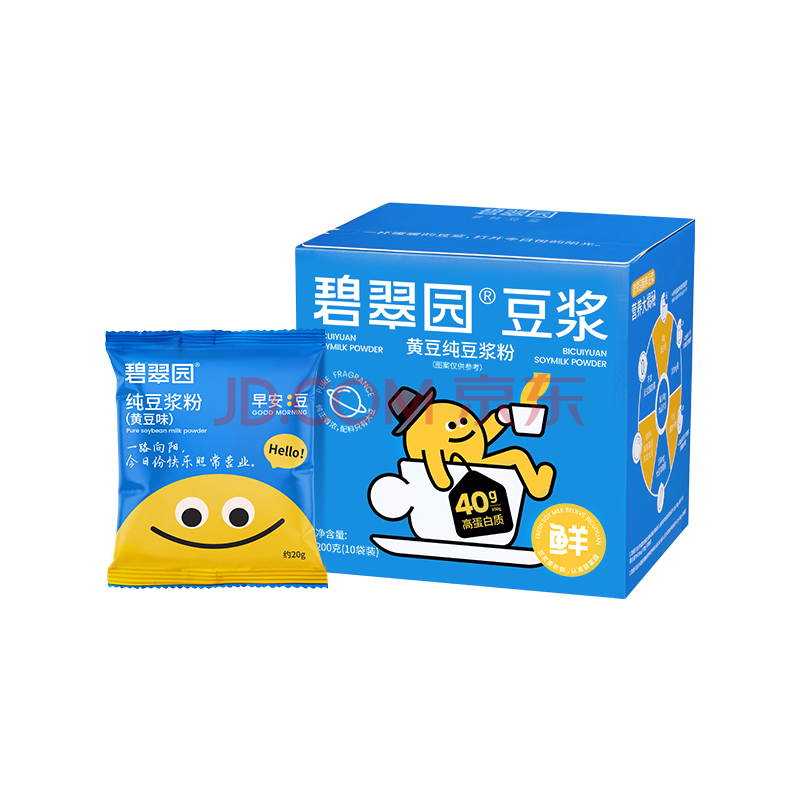 碧翠园 黄豆浆粉0添加糖浓郁清香高蛋白营养早餐代餐冲饮谷物10包*20g