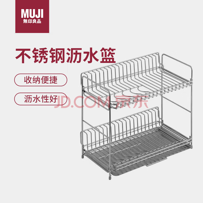 无印良品(MUJI)不锈钢 双层沥水篮 厨房置物架碗架台面碗碟架水池收纳架