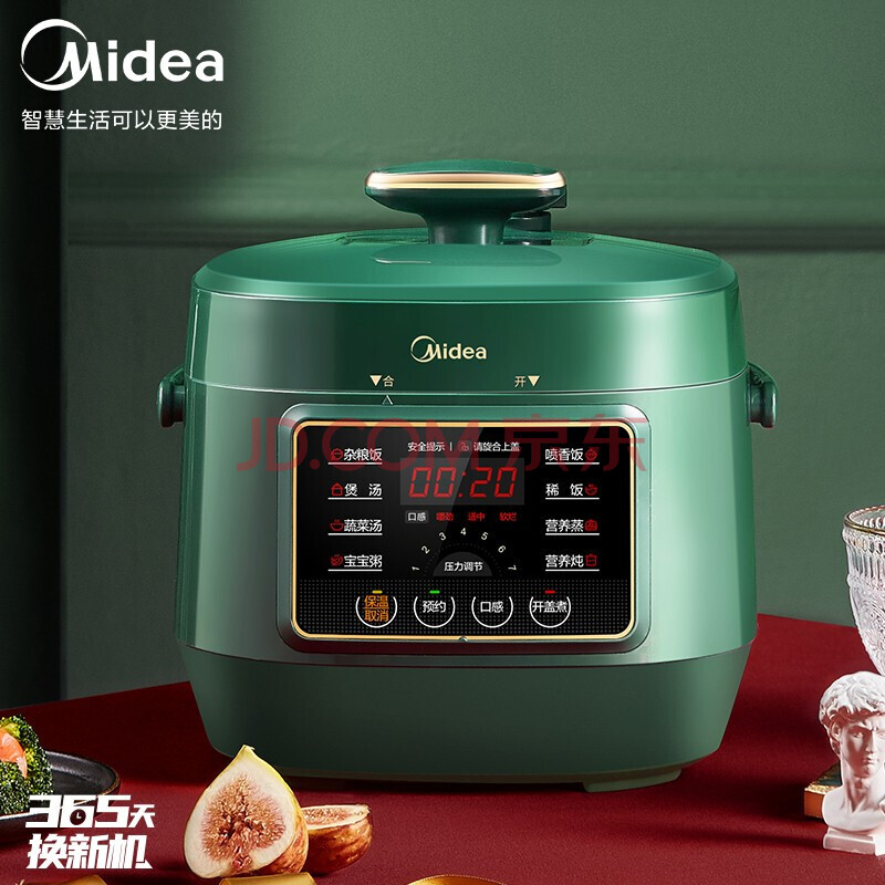 美的(Midea)复古智能电压力锅小高压锅2.5L家用多功能不粘内胆高压快煮智能预约压力锅S340(1-3人食用)