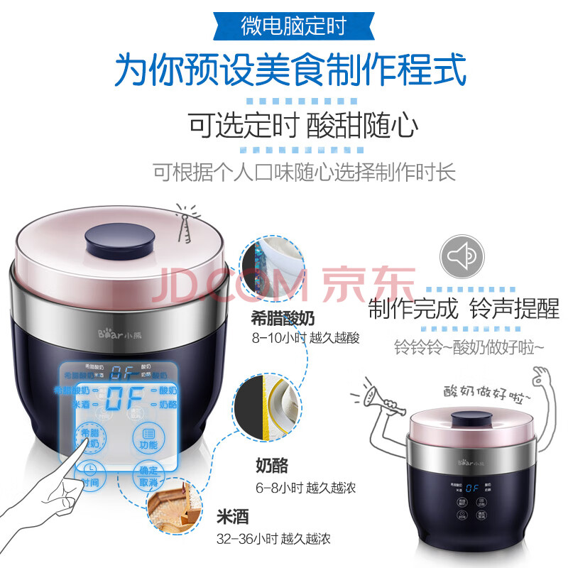 小熊(Bear)酸奶机 SNJ-C10T1 家用全自动希腊酸奶奶酪米酒机 酸奶发酵菌玻璃内胆陶瓷分杯
