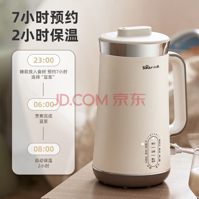 小熊(Bear)豆浆机 DJJ-C08G1 破壁免滤密闭熬煮 智能预约 304级全自动免清洗豆浆机 17h预约+2h保温