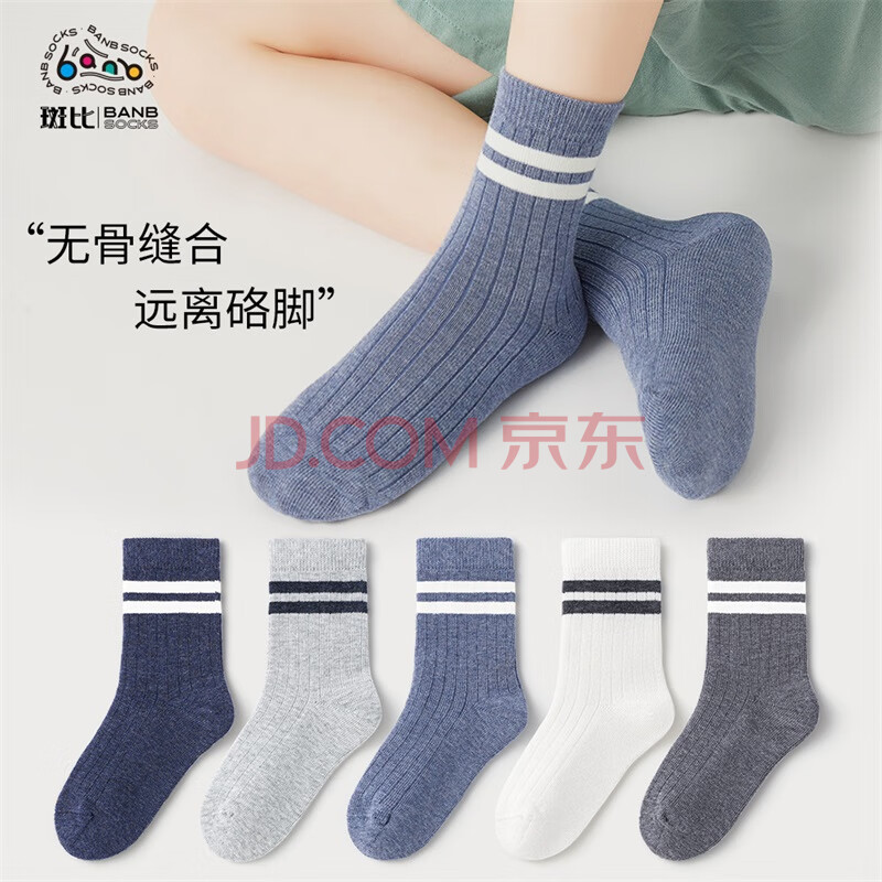 斑比儿童袜子秋冬季学生男孩大童春秋无骨中筒棉袜BB22512 20-22码