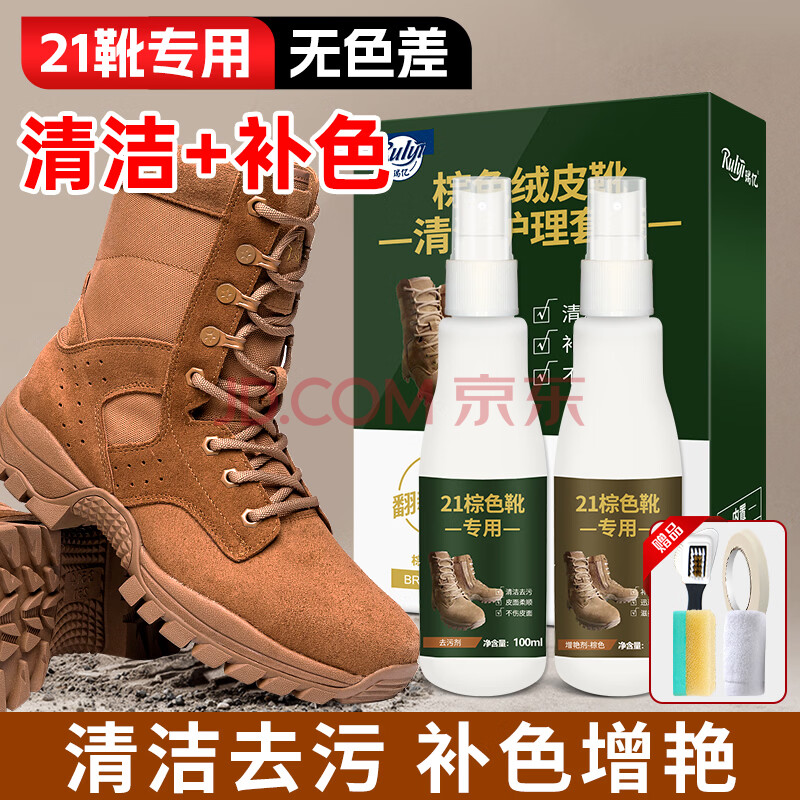 瑞亿(RuIyi)作战靴清洁补色套装翻毛皮鞋清洗剂勃肯鞋油大黄靴棕色增艳护理剂