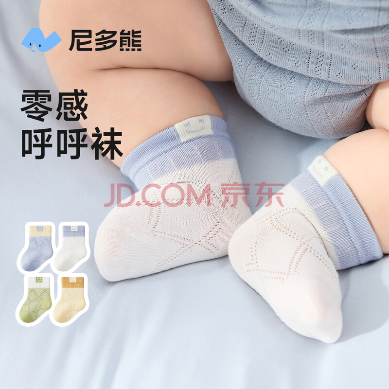 尼多熊婴儿袜子夏季薄款棉质女宝袜子儿童无骨舒适男宝宝网眼袜子