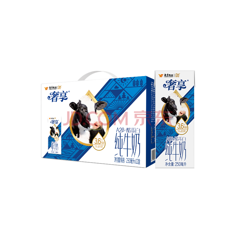 辉山奢享纯牛奶250ml*12盒 3.6g乳蛋白 120mg原生高钙 A2蛋白 礼盒装