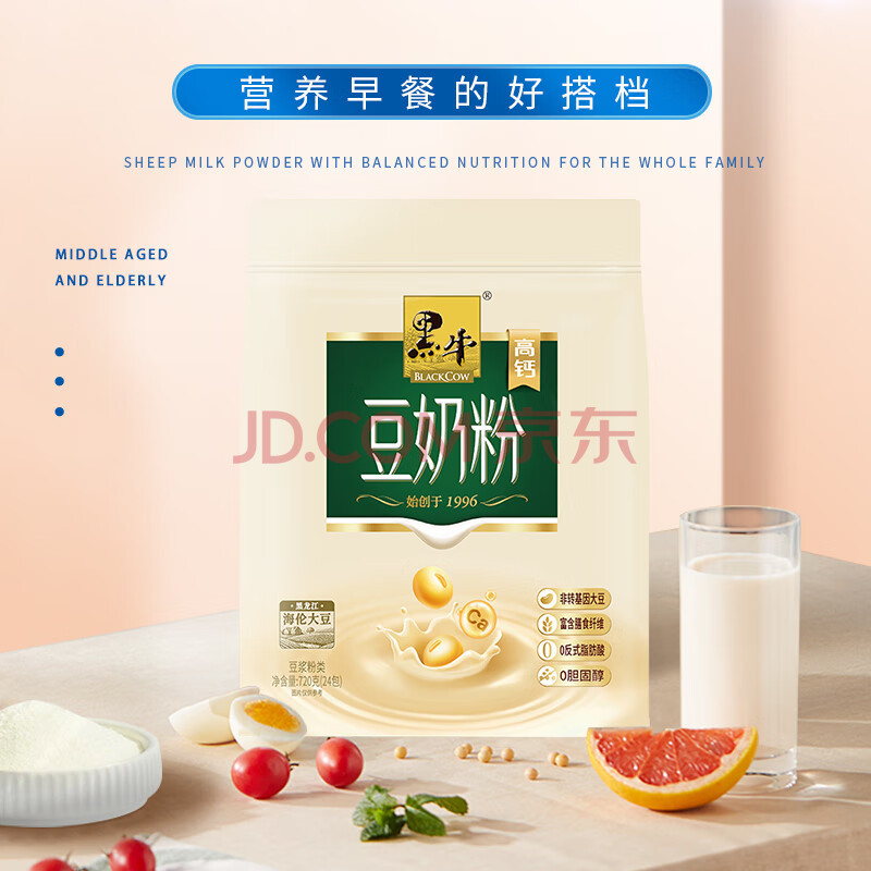 黑牛高钙豆奶粉720g 营养早餐独立包装冲调饮品代餐