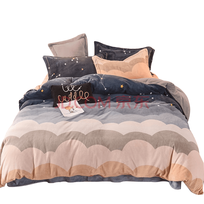 艾薇牛奶绒被套加绒被罩毛绒珊瑚绒被套单件200x230cm 云朵星辰