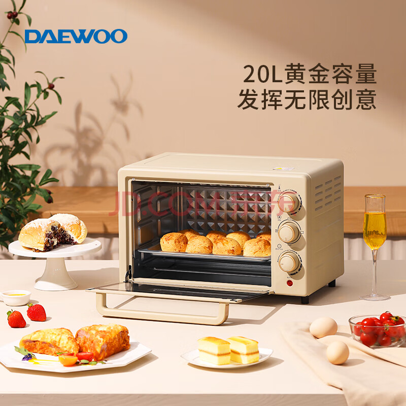 大宇(DAEWOO)电烤箱 无烟烧烤 旋钮易操作 20L大容量多功能料理机 家用全自动烘焙机 DY-KX1801 升级款