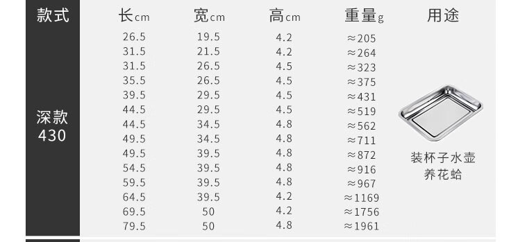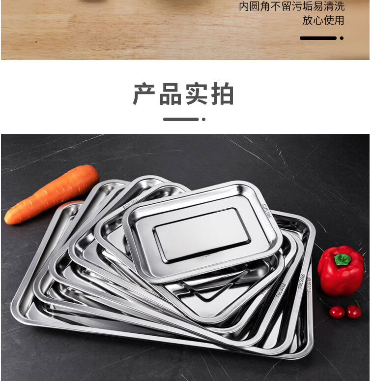 Homeglen不锈钢盘子长方形托盘餐盘烤鱼盘 35.5*26.5*4.5cm可定制